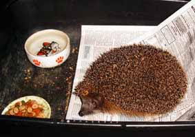 Dieser kleine, traurig dreinblickende Kerl, wurde von einem Spaziergänger abgegeben. Er ist nicht fett genug, für den nahen Winter, und muss ordentlich gemästet werden.
