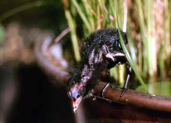 Unser Teichhühnchen, wird es schaffen. Anfangs wird es noch gefüttert, das jedoch nur gelingt, wenn man es schafft, seinen Schnabel zu öffnen. Von alleine macht er ihn allerdings nicht auf. Er benötigt einen Schlüsselreiz. Wir benutzen also eine, im schnabelrot der Elterntiere, bemalte Pinzette - und voilà, der Schnabel ist offen. Schon nach knapp 2 Wochen, wird es dann eigenständig auf die Pirsch gehen, und sich in den Schiffsteichen Futter besorgen. Der kleine Kerl ist ein Allesfresser und hat deshalb keine Probleme, mit der Nahrungssuche.